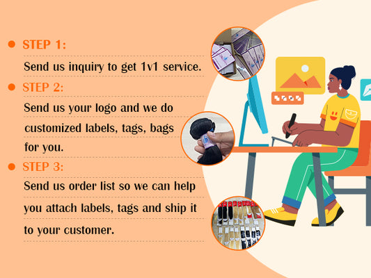2. We can help you attach your logo labels and do dropshipping for your customers. Without the tedhair logo. Here is the process.